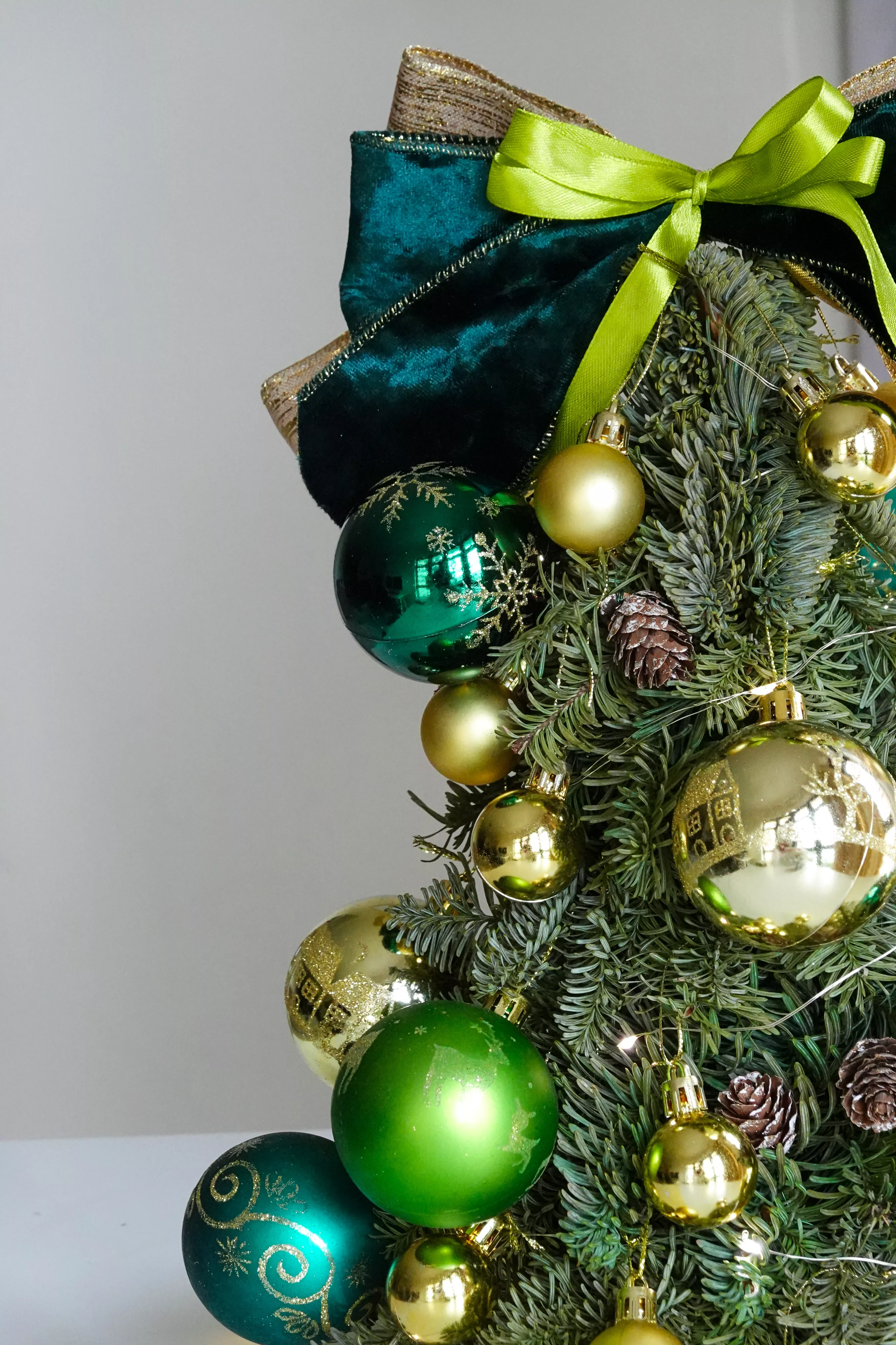 Each tree is adorned with warm fairy lights, luxurious ribbons, and elegant ornaments, thoughtfully arranged to create a refined yet cozy holiday centrepiece perfect for desks, bedrooms, living rooms, or gifting.